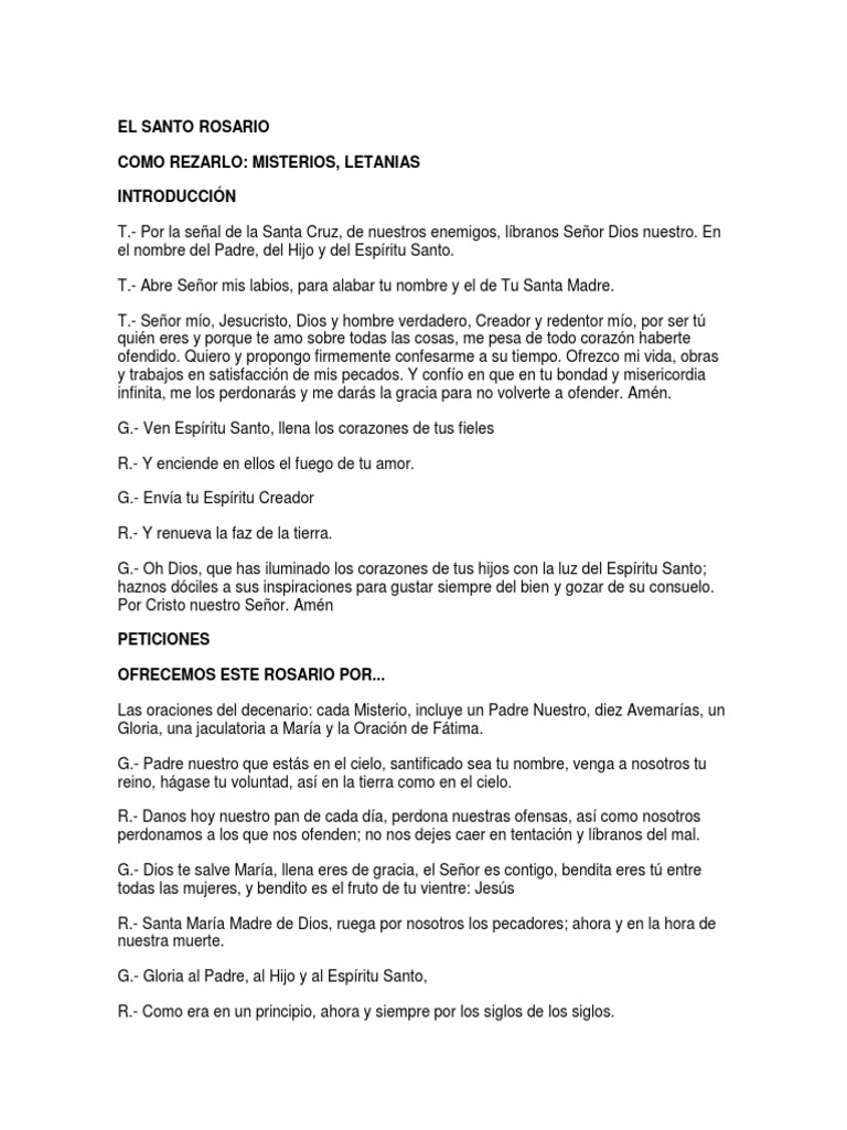 Up to 24 cash back Misterios y letanias del santo rosario pdf Saber como rezar el rosario no sólo implica a aprenderlo de forma automática o de memoria detrás de todo ello. Y mi boca proclamará tu alabanza. Cordero de Dios que quitas el pecado del mundo.